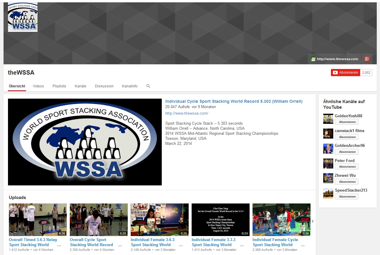 Offizieller Youtube Kanal der WSSA mit den aktuellen Rekorden im Sport Stacking aus der ganzen Welt !