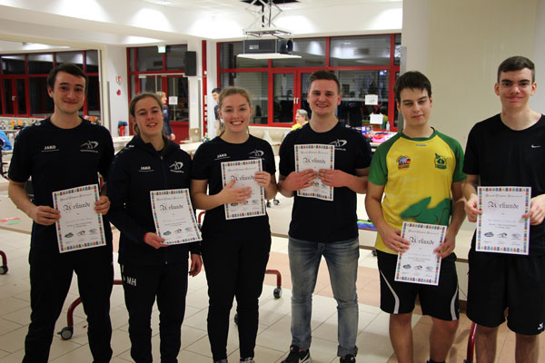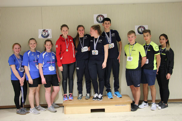 Ein bemerkenswerter Erfolg gelang Lisa Ortwein bei den 13- und 14jährigen Mädchen: nach Platz 2 in 333 und 363 gelang Lisa im Cycle eine Zeit von 7,090 sec., der die große Favoritin Finja Hollin aus Quickborn diesmal nichts entgegenzusetzen hatte, so dass Lisa stolz den begehrten Siegerpokal entgegennehmen durfte. Bei den gleichaltrigen Jungen gewann Maximilian Gemmer zweimal Silber, Benno Harlander und Lisa Ortwein freuten sich zudem über Silber mit ihrer Staffel „Jump Street“. Manuel Schichau stand nach dreimal Bronze in den Einzeln im Doppel zusammen mit Alexander Sinkovic (Stockstadt) ganz oben auf dem Siegerpodest. Dies war Shanice Klingelhöfer bei den gleichaltrigen Mädchen diesmal nicht vergönnt. Trotz sehr schneller Zeiten gewann sie „nur“ Silber in 333 und Bronze in 363, freute sich aber ebenso wie Marie Henrich umso mehr über die Erfolge in Doppel und Staffel.