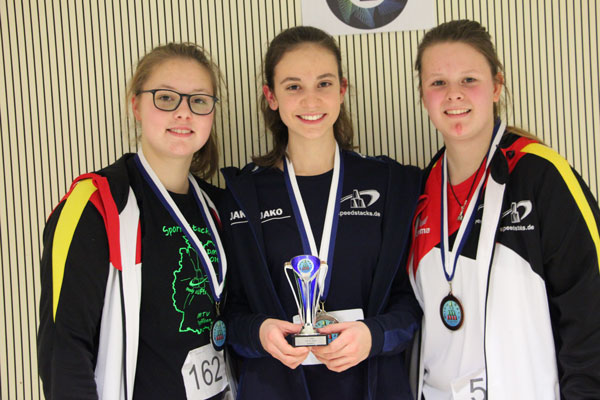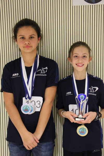 Besonders stark präsentierten sich die Doppel und Staffeln des SST Butzbach, allen voran Shanice Klingelhöfer und Lukas Drexelius, die mit 7,236 sec. die Tageswertung aller Altersklassen im Doppel vor Marie Henrich und Leon Reuhl (7,662 sec.) gewannen und die Staffel „SST and Melanie“. In diesem Team stapelten Shanice Klingelhöfer, Marie Henrich und Manuel Schichau vom SST zusammen mit der Schweizerin Melanie Fehrenbach in 14,219 sec. eine tolle Finalzeit, die ihnen nicht nur den Sieg in ihrer Altersklasse sondern auch den Tages-Gesamtsieg in der Staffelwertung einbrachte.