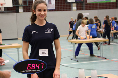 „Sweeping the division!“ – So nennen es die US-Amerikaner, wenn ein Sportler alle Disziplinen seiner Altersklasse bei einem Turnier gewinnt. Beim Wesercup gelang dies der 11jährigen Lara Ortwein vom SST Butzbach, sie gewann souverän die Einzelfinals in 333, 363 und im Cycle sowie mit Doppelpartnerin Katharina Reiß das Cycle-Doppel ihrer Altersklasse und mit der Staffel „Muffinfabrik“ auch den Zeitstaffelwettbewerb. Als derzeit schnellste Stackerin der Altersklasse 11 und 12 Jahre weiblich empfahl sich Lara damit nachdrücklich für die WM im April in Orlando/Florida.