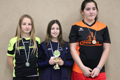 Lara Ortwein (Siegerehrung Mitte) gehörte mit 5 Goldmedaillen zu den erfolgreichsten Teilnehmerinnen, ihre Schwester Lisa schaffte mit 6,847 sec. im Cycle eine neue persönliche Bestleistung (vgl. Bericht).