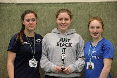 In der Altersklasse 17/18 Jahre weiblich starteten Marie Henrich und Shanice Klingelhöfer für das SST Butzbach und trafen auf eines der stärksten Felder dieses Wettkampftages. Während Shanice sich von Finale zu Finale steigerte und mit Platz 2 in 363 in 2,277 sec. sowie Platz 1 im Cycle in 6,617 sec. zu den drei besten Stackerinnen des Tages zählte, musste Marie mit der Silbermedaille im Cycle in 6,802 sec. zufrieden sein. Im Doppel drehte sie zusammen mit Leon Reuhl den Spieß um und gewann in der Tagesbestzheit von 7,283 sec. Gold vor Shanice an der Seite von Lukas Drexelius (7,307 sec.). Manuel Schichau erwischte bei den 17/18jährigen Jungen einen sehr guten Start in der Disziplin 333 mit neuer Bestzeit von 1,877 sec, die Platz 3 bedeuteten. Gemeinsam mit Alexander Sinkovic gewann er zudem Gold im Doppel sowie Silber mit der Staffel.