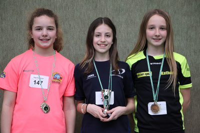 Einen der begehrten Pokale für den Sieg im Cycle gewannen Lara Ortwein (11 Jahre) und Shanice Klingelhöfer (17 Jahre, vgl. Bericht).