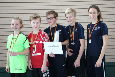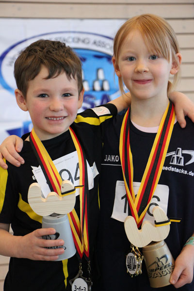 Noch besser lief es für Lara Ortwein und Celine Peters, die zusammen mit Salome Abb, Jon Faisst und Mark Reinbold beide Goldmedaillen ihrer Altersklasse 11/12 Jahre gewannen und im Zeitstaffelwettbewerb Zweite wurden. Gleich drei mal Gold gewann die Staffel „Jump Street“ mit den SST-Stackern Maximilian Gemmer, Benno Harlander und Lisa Ortwein, die zusammen mit Lara und Tom Penzel von der SG Wismar an den Start gingen.