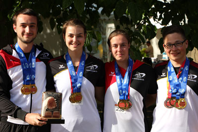 Ein Überraschungscoup gelang dem deutsch-holländischen Staffelteam in der AK 18 Jahre und jünger mit Lisa Ortwein vom SST Butzbach, die in der Cycle-Turnierstaffel Weltmeister wurden