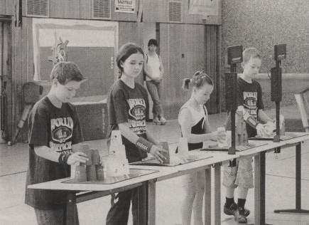 ... im Speed Stacking von der Butzbacher Weidigschule hatten am Samstag beim Gau-Turntag in der Butzbacher Sporthalle eine riesige Zuschauerkulisse. Während einer Wettkampfpause hatte die vier Speed Stacker ihren Auftritt und stellten sogar einen weiteren inoffiziellen Weltrekord auf.