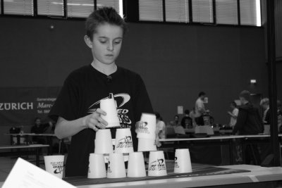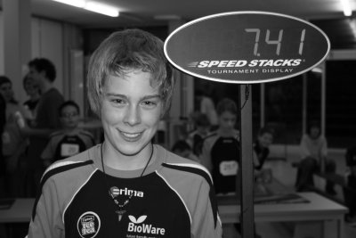 Butzbach (br) – Ende des Jahres 2006 kam die Nachricht über den großen Teich: "Three new Sport Stacking World Records established“ lautete die Schlagzeile einer Pressemitteilung des Weltverbandes WSSA aus Denver/Colorado. "Drei neue Weltrekorde aufgestellt – Deutsche Stacker legen die Messlatte höher!“ Nachdem das Deutsche Team schon bei der WM 2006 für Furore gesorgt hatte, brachen nun bei den ersten beiden Qualifikationsturnieren für die Deutschen Sport Stacking Meisterschaften am 27. Januar 2007 in Butzbach fast alle Dämme in der bislang von Amerikanern dominierten Sportart. In Salzkotten beim Widey-Cup verbesserte zunächst Timo Reuhl (12 Jahre) den Gesamtweltrekord in der Disziplin 3-3-3 von 2,31 auf 2,22 Sekunden, danach toppte die 3-6-3-Zeitstaffel des SST Butzbach mit Timo Reuhl, David Wolf, Christoph Sauer und Miriam Christ den alten Weltrekord von TTMD (16,19 Sek.) auf fantastische 15,04 Sekunden. Bei den Weidig Open in Butzbach gelang dann Robin Stangenberg ein erfolgreicher Angriff auf die über vier Jahre alte Bestmarke der US-Ikone Emily Fox im Cycle. Mit 7,41 Sekunden blieb er zwei Hundertstel unter dem alten Weltrekord und setzte damit einen neuen Meilenstein in der noch jungen Geschichte des Stacking Sports.