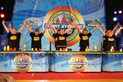 BUTZBACH/DENVER. (br). Die Bilanz kann sich sehen lassen: Mit 26 Gold-, 18 Silber- und 10 Bronzemedaillen sowie zahlreichen weiteren Finalplatzierungen konnte das deutsche Team bei den Sport Stacking Weltmeisterschaften am 5. und 6. April in Denver / USA nahtlos an die großartigen Erfolge der Vorjahre anknüpfen. Erfolgreichste Medaillensammler für Deutschland waren der 9jährige Ryan Powell und Ilona Reuhl (Masters 3, beide SST Butzbach), die jeweils fünf Goldmedaillen und zwei Silbermedaillen gewannen. Für die sportlichen Highlights im „Finale der Champions“ sorgten Timo Reuhl und David Wolf, die mit 7,65 Sekunden den Gesamtweltrekord im Cycle zurückeroberten, sowie Timo Reuhl, Tanja Buchholz, Marcus Reitz und Miriam Christ. Sie verbesserten im Bühnenfinale der 3-6-3-Zeitstaffel mit 13,19 Sekunden ebenfalls den Gesamtweltrekord.