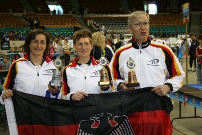 Sie gewannen alle Medaillen ihrer Altersklasse Masters 3: (v.l.) Ilona Reuhl, Heidi Braunewell und Wolfgang Bleischwitz.