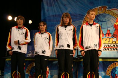 Zweimal Bronze gewann das deutsche Quartett im Turnier 18 Jahre und jünger. Florian Friedrich, Tanja Buchholz, Laura Baumann und Mohammed Sahraoui konnten zwar die Amerikaner in Schach halten, fanden aber in einem exzellent aufgelegten englischen Team ihren Meister. Die gute Tagesbilanz rundeten die Open-Staffeln der Erwachsenen ab, die zwei Silbermedaillen gewannen: Im 363-Turnier gelang dies Sabrina Obenlüneschloss, Ilona Reuhl, Sabrina Haase, Rebecca Ernst und Boris Konrad, im Cycle-Turnier Annette Rödl, Wolfgang Bleischwitz, Heidi Braunewell und Timo Böhm. Das dienstälteste deutsche Team „Prime Timers 173“ mit Holger Müller, Elke Klingelhöfer, Heike Böhm und Rüdiger Wolf belegte in beiden Turnieren einen achtbaren Mittelplatz.