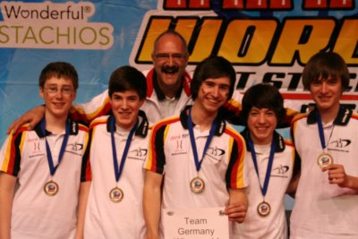 Kurz darauf brandete Jubel unter den deutschen Fans im Block der Elfjährigen auf, als das deutsche Team nach dramatischem Turnierverlauf im Finale die Amerikaner bezwang. Marie Henrich, Jonas Rödl, Ryan Powell, Shanice Klingelhöfer und Hanna Müller hatten gleich das erste Match gegen dieses US-Team verloren, wurden dann aber von Ilona Reuhl erfolgreich durch die Trostrunde gecoacht und gewannen die zweite Goldmedaille für Deutschland (ausf. Bericht folgt).