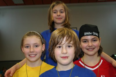 Erfolgreichster Turnierteilnehmer war der 10jährige Ryan Powell (vorne), der sich hier mit seinen Staffelkolleginnen Shanice Klingelhöfer, Marie Henrich und Hanna Müller dem Fotografen stellte