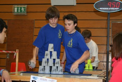 Zum Abschluss des Turniers traten die schnellsten Stacker des Tages noch einmal in einem Ausscheidungsduell gegeneinander an. Jonathan und Timo setzten sich hier souverän durch und bestritten das Finale. Im ersten Match hatte Timo knapp mit 7,31 zu 7,36 sec. im Cycle die Nase vorn, was Jonathan so unter Druck setzte, dass er im zweiten Match einen Fehler machte, so dass Timo den Siegerpokal mit nach Hause nehmen durfte.