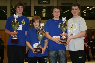 Florian Friedrich und Marcus Reitz trugen sich bei den 16jährigen in die Medaillenlisten ein. Florian siegte in 333 (2,17 sec.), holte Silber in 363 (2,76 sec.) und Bronze im Cycle (8,12 sec.). Marcus zeigte sich wettkampfstark und durfte sich über Bronze in 333 (2,51 sec.) freuen, mit Platz 5 in 363 und Platz 4 im Cycle (8,19 sec.) war er sehr zufrieden. Auch Carina Hieronymi fügte ihrer Medaillensammlung eine Bronzemedaille in der 333-Konkurrenz der 17jährigen hinzu, die sie mit 2,31 sec. beendete. Samuale Kettler wurde Zweiter im Cycle (7,76 sec.) und Dritter in 363 (2,74 sec.), und das, obwohl er mit Krücken an den Finaltisch humpeln musste. Zwei Titel bei den 18jährigen gewann Mohammed Sahraoui. In 333 überzeugte er mit 2,30 sec., den Cycle gewann er in 7,69 sec.. Mit Silber in 363 und Bronze in 333 und Cycle komplettierte Tobias Richter hier den SST-Erfolg.
