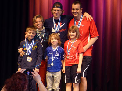 Auch in den Doppeldisziplinen waren die SSTler häufig auf den Podiumsplätzen zu finden, so gewannen Lisa Ortwein und Maxi Gemmer in der AK 10U, Lara Ortwein und Luana Gemmer bei den 8jährigen und Heidi Braunewell mit Reiner Frost in der Master 3 Klasse . Shanice Klingelhöfer musste sich mit Hanna Müller (Biebesheim) mit dem undankbaren 4.Platz begnügen, zusammen mit ihrer Mutter Elke konnte sie aber Bronze im Eltern/Kind-Doppel holen. Elke gewann mit Holger Müller (Biebesheim) Silber bei den Master 2 , wie auch Daniela und Maxi Gemmer im EK-Doppel 10U. Auch Ruben Kehl durfte sich zusammen mit dem Zuffenhausener Bien Nguyen Über dieses Edelmetall freuen.