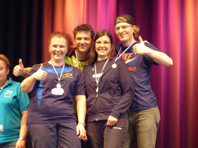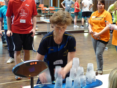 Überraschend gewann das am Turniertag noch zusammengewürfelte Team "Die schnellen 4" mit Elke Klingelhöfer, Bianka Engelmann (Crailsheim), Markus Knie (Speichersdorf) und Dennis Schleussner (Berlin), die im richtigen Moment Coolness bewiesen und mit 19,394 Sekunden sogar den Weltrekord in der AK Master 2 holten. Bei den Master 3 ging Heidi Braunewell zusammen mit Holger Müller, Reiner Frost (Wiesbaden) und Wolfgang Bleischwitz (Zuffenhausen) an den Start und auch dieses Quartett setzte sich souverän durch und durfte sich über Gold freuen.