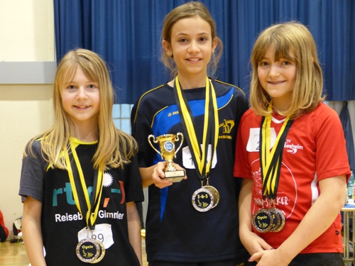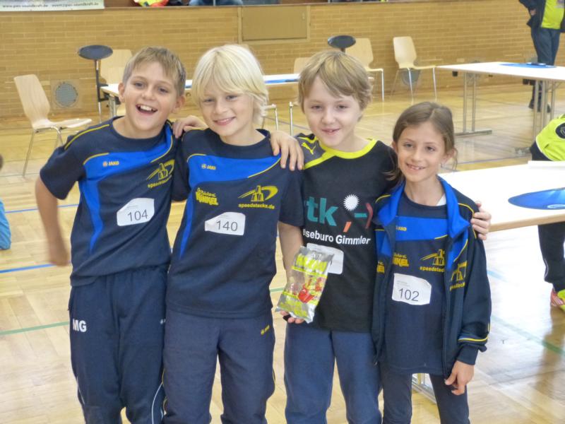Bei den Mädchen bis 8 Jahre hatten Lara Ortwein und Luana Gemmer vom SST die beiden oberen Podestplätze abonniert, wobei Lara einmal mehr so herausragende Siegerzeiten stapelte, dass sie eine Nominierung für das deutsche WM-Team 2015 erhielt. Auch im Doppel siegten die beiden Jüngsten des SST, wobei sie beachtlicherweise nur halb so lange wie das zweitplatzierte Doppel benötigten. Bei den 10jährigen Jungen qualifizierten sich Maxi Gemmer und Benno Harlander für alle Einzelfinals. Maxi nahm nach der Vorrunde nur Spitzenpositionen ein, ging aber im Finale in zu hohes Risiko ein, so dass er in 363 mit Platz 2 und im Cycle mit Platz 3 zufrieden sein musste. Benno zeigte in seinem zweiten Wettkampf sehr gute Leistungen und gewann zwei Silber- und eine Bronzemedaille, wobei er sich besonders über seine Cyclezeit von 9,114 sec. freute. Maxi hatte nach den Doppelfinals auch wieder Grund zur Freude, denn zusammen mit Lisa Ortwein gewann er das Finale der 12jährigen mit sehr guten 8,866 sec.