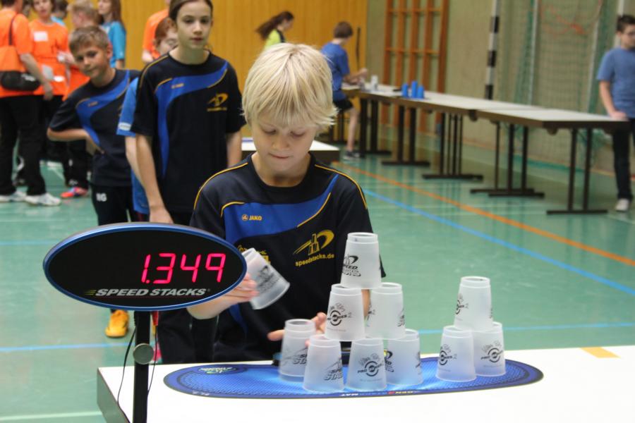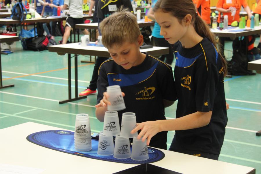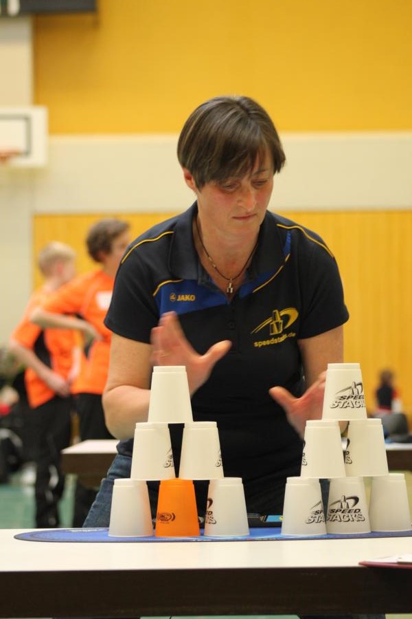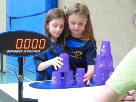 Dabei hatte sich Lara vor dem Finale noch einen Finger in einer Tür eingeklemmt und war alles andere als topfit. Im Wettkampf aber zeigte sie ein großes Kämpferherz und gewann trotz Handicap alle Einzeldisziplinen. Die Rekordzeit in 363 war die erste Zeit unter drei Sekunden, die je von einem 8jährigen Mädchen in Deutschland gestapelt wurde. Zusammen mit Luana Gemmer, die in allen Einzeldisziplinen Silber gewann, holte sich Lara auch den Sieg im Doppel, wobei sie bemerkenswerterweise nur halb so lange benötigten wie die Zweitplatzierten.