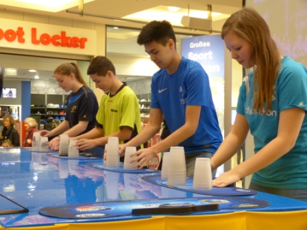 Organisiert vom SST Butzbach e.V., dem führenden Sport Stacking Verein Deutschlands, der dieses Jahr sein 10-jähriges Jubiläum feiert, trafen sich 20 der besten Schnellstapler des Landes, um den Kunden ihren Einkaufsbummel zu versüßen.