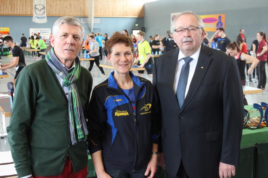 Zur Siegerehrung hatte sich auch Landtagspräsident Norbert Kartmann als Schirmherr und Sportkreisvorsitzender Jörg Wulf eingefunden, auf unserem Bild zusammen mit der SST-Vorsitzenden Dr. Heidi Braunewell(vgl. Bericht).