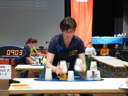 Anschließend ging es in die Einzel-Stack-offs. Im 333 blieb es bei den Platzierungen aus dem Finale und Marie gewann mit 1,83 sec vor Melanie Fehrenbach aus der Schweiz (1,84) und Shanice (1,85).
