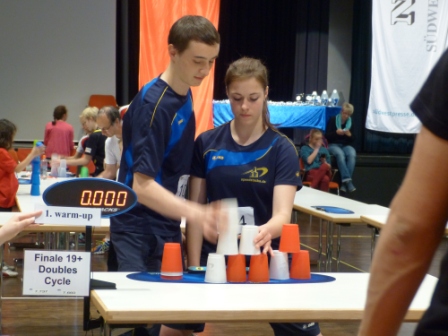 Bei den 15- und 16-jährigen Mädchen traf Deutschlands weibliche Stacking Elite aufeinander, denn mit den beiden SSTlerinnen Marie Henrich und Shanice Klingelhöfer bahnte sich in der Vorrunde schon an, dass sie zusammen mit Hanna Müller um die Medaillenränge kämpfen würden. Marie gewann das 3-3-3 Finale mit 1,830 Sekunden knapp vor ihrer Mannschaftskameradin (1,850), wo hingegen Shanice im 3-6-3 die Oberhand gewann und mit neuem deutschen Rekord von 2,202 sec Gold holte. Hier musste Marie sich mit dem undankbaren 4. Platz begnügen. Besser lief es dann wieder im Cycle. Nach der Vorrunde als Sechste ins Finale gelangt, konnte Marie mit 7,219 sec Druck aufbauen. Shanice hielt diesem aber erneut stand und gewann die Königsdisziplin mit hervorragenden 6,294 sec. Marie holte sich Bronze hinter Lia Ziegler (7,050).