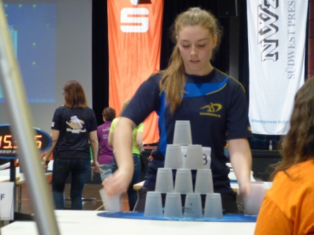 Butzbach (br) - Die Sport Stacker des SST Butzbach e.V. waren auch zwei Wochen nach der Weltmeisterschaft in Montreal immer noch in WM-Form. Beim Staufer-Stack im baden-württembergischen Eislingen ging ein kleines Team des SST an den Start und zeigte isch erneut in Rekordlaune. Herausragende Ergebnisse waren ein neuer deutscher Overall Rekord und Weltrekord in der Altersklasse 15/16 weiblich durch Shanice Klingelhöfer sowie ein deutscher Staffelrekord in der Open-Altersklasse durch das SST-Team mit Marie Henrich, Shanice Klingelhöfer und Leon Reuhl.
