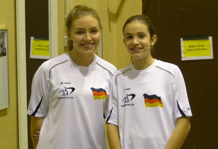 Lisa erteilt die erste Lehrstunde für Malte Arkona in Sport Stacking