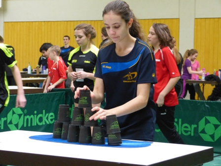 Außergewöhnliche Wettkampfstärke bewies Shanice Klingelhöfer bei den 15/16-jährigen Mädchen. Sie gewann 333 in ausgezeichneten 1,768 sec, ließ mit 2,246 sec. in 363 eine weitere Weltklassezeit folgen und siegte im Cycle mit 6,234 sec., womit sie auch die Tagesgesamtwertung bei den Mädchen überlegen gewann. Im Doppel wurde sie an der Seite von Hannah Müller Dritte mit 7,751 sec. Marie Henrich ging mit dem Handicap einer Erkältung in den Wettkampf, steigerte sich aber von Finale zu Finale und setzte im Cycle mit sehr schnellen 6,378 sec. als zweitschnellste Stackerin des gesamten Turniers ein deutliches Ausrufezeichen in Richtung Weltmeisterschaft.