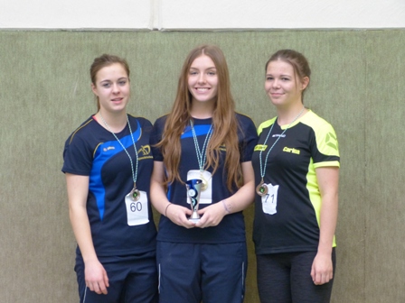 Im Anfängerturnier gewannen Carolin Wilfer (Mitte) und Celine Peters (rechts) vom SST Butzbach alle Goldmedaillen