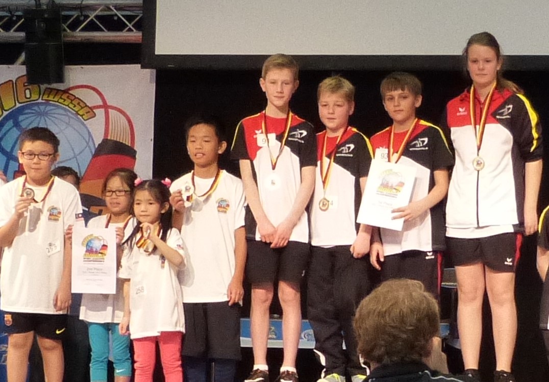 Maxi Gemmer landete mit dem Team Germany NJFM der 12jähigen im 363-Zeitstaffelwettbewerb großen Coup, den das deutsche Team hielt mit 16,028 sec. gegenüber 16,225 sec. die Malaysia All Stars in Schach und wurde Weltmeister!