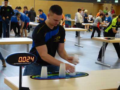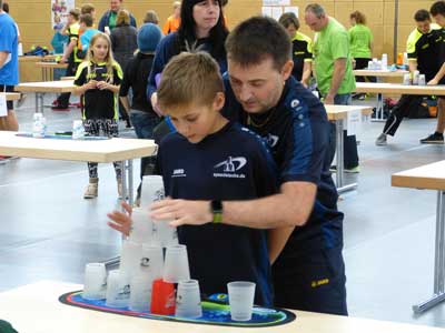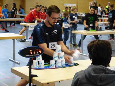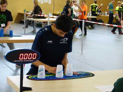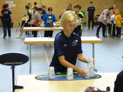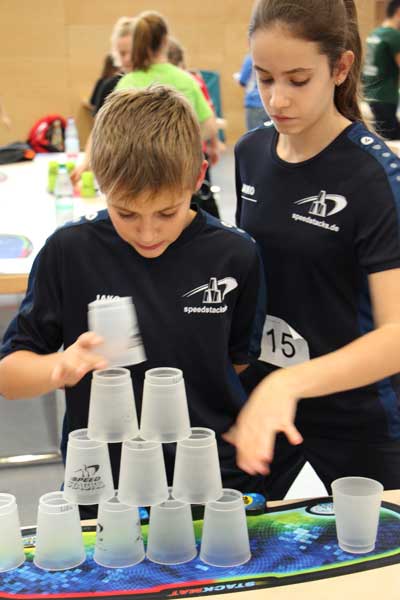 Mit sehr guten Leistungen hatte sich Maximilian Gemmer bei den 12jährigen Jungen für alle Finals qualifiziert, musste sich dort aber gegen starke Konkurrenz behaupten. Das gelang ihm sehr gut, denn er gewann das 363-Finale mit schnellen 2,399 sec. und wurde in 333 und im Cycle Zweiter. Über die zweite Goldmedaille durfte sich Maxi zusammen mit Lisa Ortwein freuen. Gleich im ersten Versuch des Doppelfinales stoppten die beiden die Uhr nach 7,974 sec. und konnten von der Konkurrenz nicht mehr vom Spitzenplatz verdrängt werden.