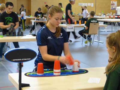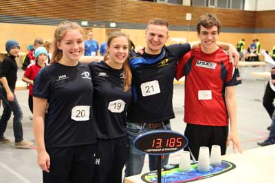 Das Tageshighlight für Marie war zweifellos die 363-Zeitstaffel, denn hier legte sie zusammen mit Shanice, Lukas Drexelius und Felix Zarbock im Finale glänzende 13,827 sec. vor, die aber vom „Team of the Year“ des TV Zuffenhausen knapp unterboten werden konnten. Beide Teams hatten damit die schnellsten Tageszeiten erzielt und trafen im Stack Off nochmals aufeinander. Diesmal steigerte sich das SST-Team auf tolle 13,185 sec. und holte damit den Sieg in der Tageswertung.